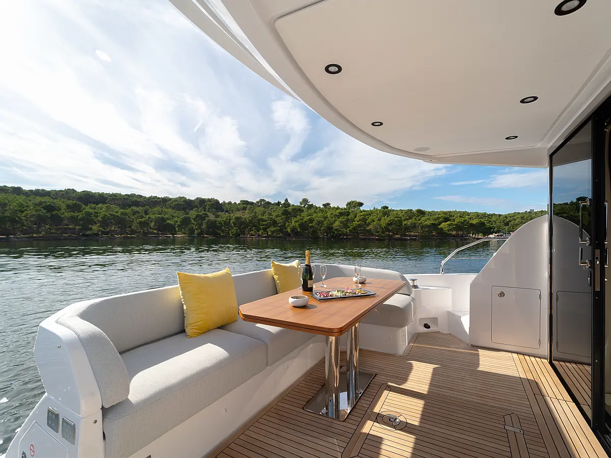 Azimut 53 Fly ‘Leeloo’ (2025) – Luxury Motor Yacht Boat information Azimut 53 Fly “Leeloo” (2025) merges Italian design and cutting-edge performance, offering panoramic flybridge views, elegant indoor lounges, and fluid transitions between sun, shade, and sea. L.O.A. 16.8m (55 ft) B.O.A. 4.9m (16 ft) Draft 1.52m (5 ft) Engine 2 × 725 HP Cabins 4 (3 + 1) Bathrooms 2 Fresh water 590l Fuel 2,400l Starting price from 18,950€ per week + additional expenses Make an inquiry Preferred departure date How much days would you like to sail? Crew members Choose a region Istria Region Kvarner Region Zadar Region Sibenik Region Split Region Dubrovnik Region Boat type Catamaran Sailing boat Motor boat Motoryacht Trimaran Gulet Power catamaran Boat size (ft) Additional Requests Message Price range (€) Send an inquiry Boat gallery