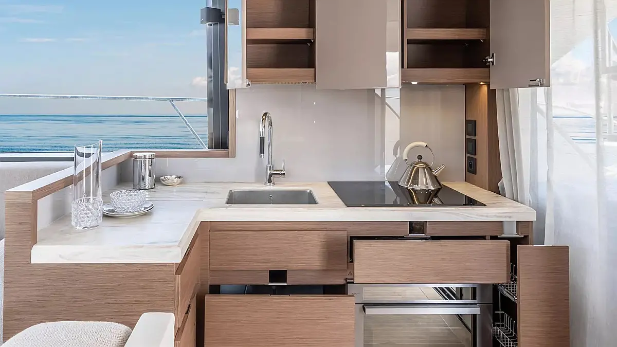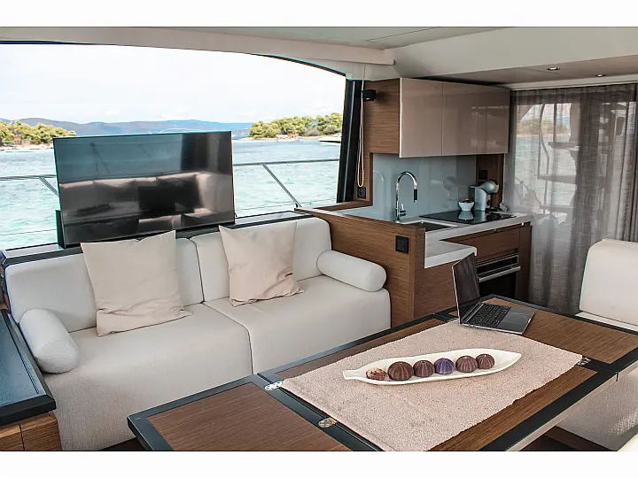 Monte Carlo 52 ‘Nora’ Boat information Monte Carlo 52 ‘Nora’ blends contemporary French design with relaxed flybridge living, offering bright interiors, generous outdoor space, and a smooth cruising experience ideal for refined Adriatic escapes. L.O.A. 16.2m (53ft) B.O.A. 4.6m (15ft) Draft 1.2m (4ft) Engine 2 × 445 HP Cabins 3 (3 + 1) Bathrooms 2 (2 + 1) Fresh water 400l Fuel 1,300l Starting price from 11,900€ per week + additional expenses Make an inquiry Preferred departure date How much days would you like to sail? Crew members Choose a region Istria Region Kvarner Region Zadar Region Sibenik Region Split Region Dubrovnik Region Boat type Catamaran Sailing boat Motor boat Motoryacht Trimaran Gulet Power catamaran Boat size (ft) Additional Requests Message Price range (€) Send an inquiry Boat gallery